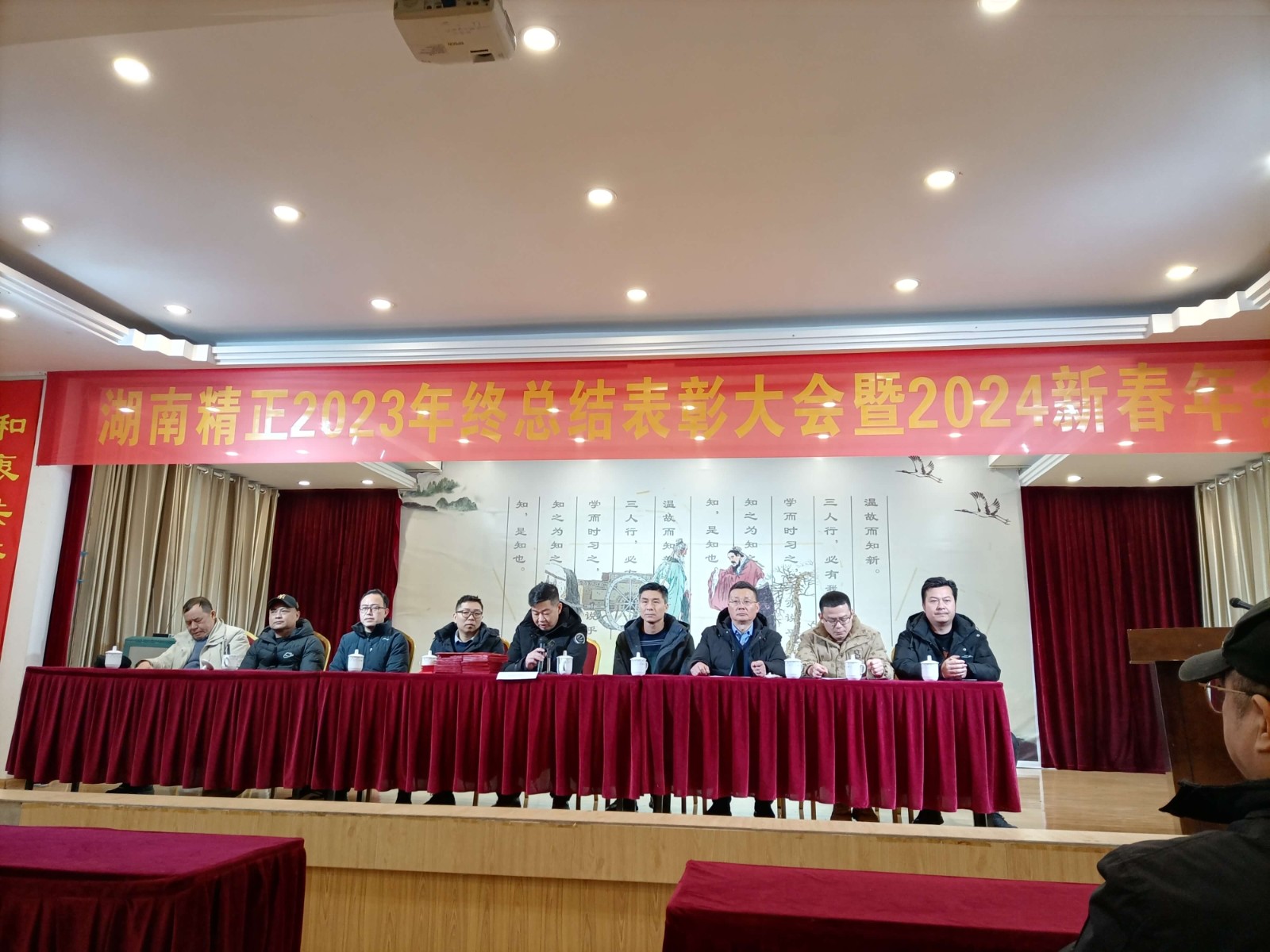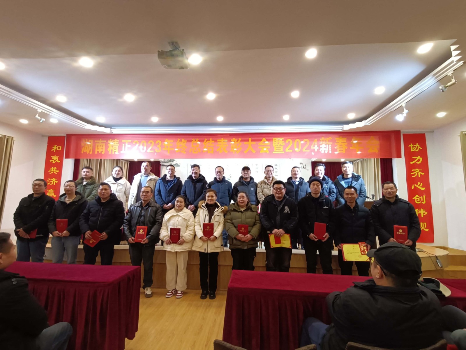 2024年2月7日上午,在公司二楼大会议室召开了“2023年终总结表彰大会暨2024新春年会”,会议由公司副总朱济南主持,总经理欧阳铁球为大家做了2023年度总结报告及2024年的工作规划,并代表董事长颜剑先生祝大家:新春快乐、家庭幸福、万事顺意!中午,全体人员在公司的溢香园酒店聚餐,并表演了节目。